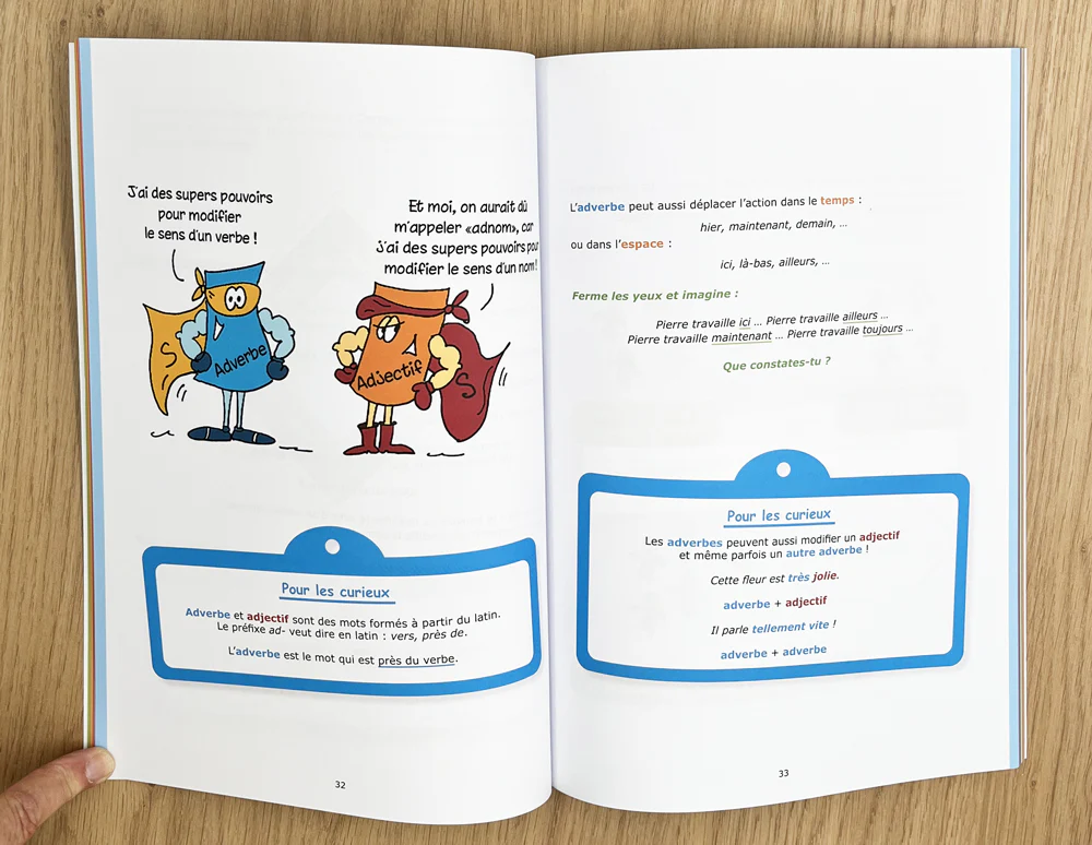 Et si la grammaire pouvait prendre vie, formes, couleurs et odeurs, si elle était expliquée en lui donnant du sens avec des dessins sympas et des schémas colorés pour mieux la comprendre et la mémoriser, quel bond en avant pour nos jeunes qui se casse la tête à comprendre ce qui est explicable de façon toute simple !