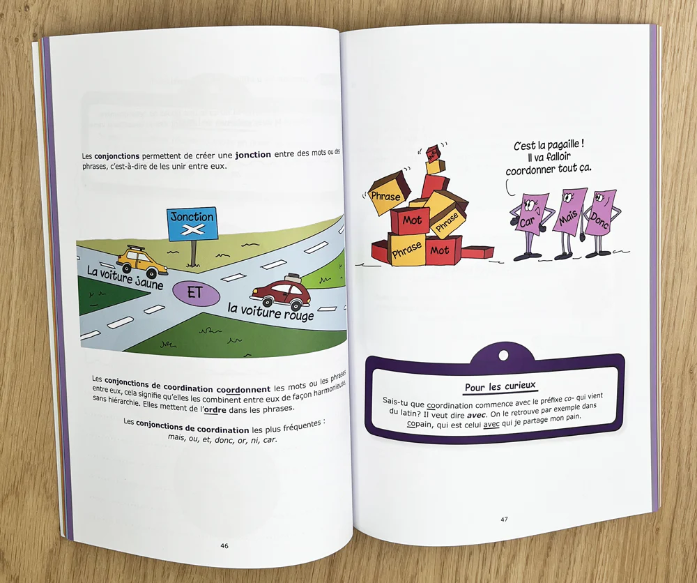 Enfin un livre de grammaire qui décortique, explique, fait des liens avec la vie de tous les jours, banni les mots compliqués comme une conjonction de coordination par exemple pour expliquer que c’est juste un lien pour coordonner deux phrases !
