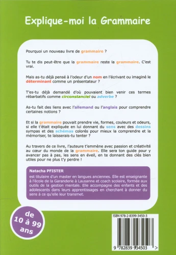Avec Explique-moi la grammaire dès 10 ans, Natacha Pfister propose un livre clair, progressif et ludique pour aider les enfants à maîtriser les bases de la grammaire et du français de façon simple et efficace.
