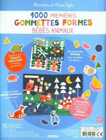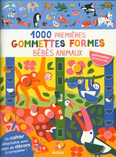 Un cahier de plus de 1000 gommettes de formes géométriques qui servent à compléter des décors détachables sur le thème des bébés animaux.
