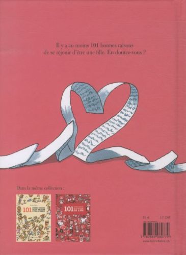 Dans la même veine et sur le même principe que 101 bonnes raisons de se réjouir d’ être un enfant et 101 bonnes raisons de se réjouir de lire, Béatrice Masini s’est amusée à rassembler 101 phrases qui pourraient faire croire qu’être une fille est un vrai bonheur. Les garçons apprécieront.