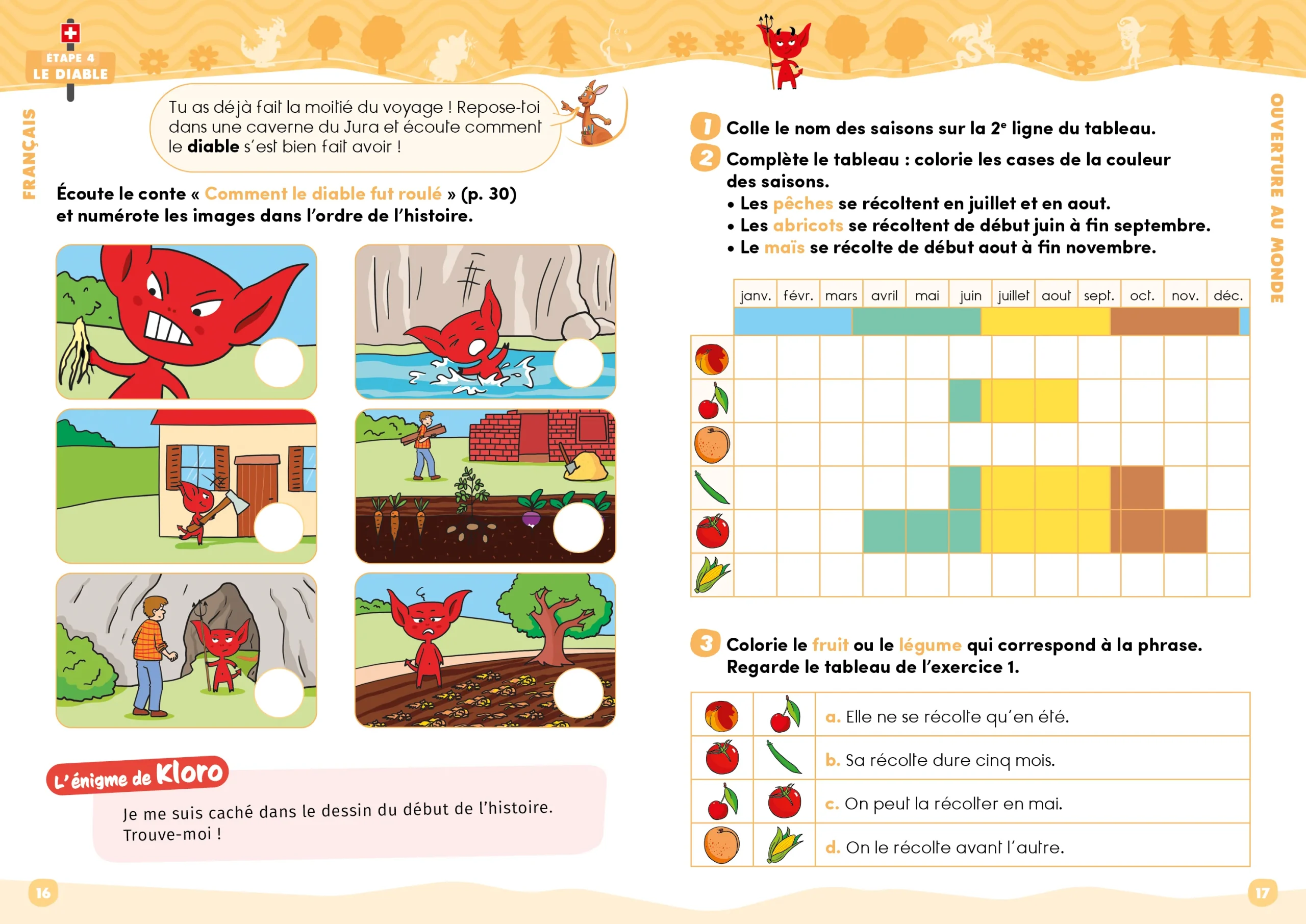 Klorophile propose un cahier de vacances d’exercices d’écriture, de lecture et de maths basé sur le programme romand de 3ème, pour les enfants de 6 à 7 ans, afin de réviser les notions acquises pendant l’année scolaire.