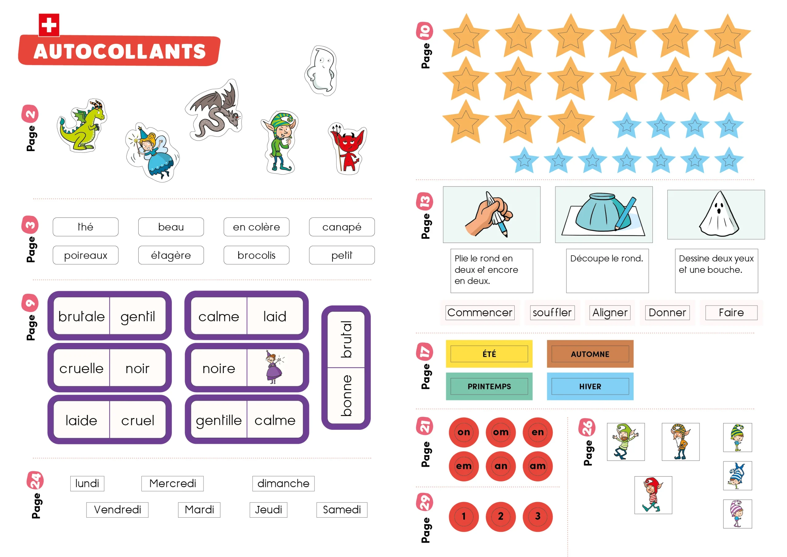 Il abordera, sous forme de jeux, le démarrage des additions, des jeux avec les nombres, des dictées sur l’apprentissage du vocabulaire, de la conjugaison, de la grammaire, des lectures.