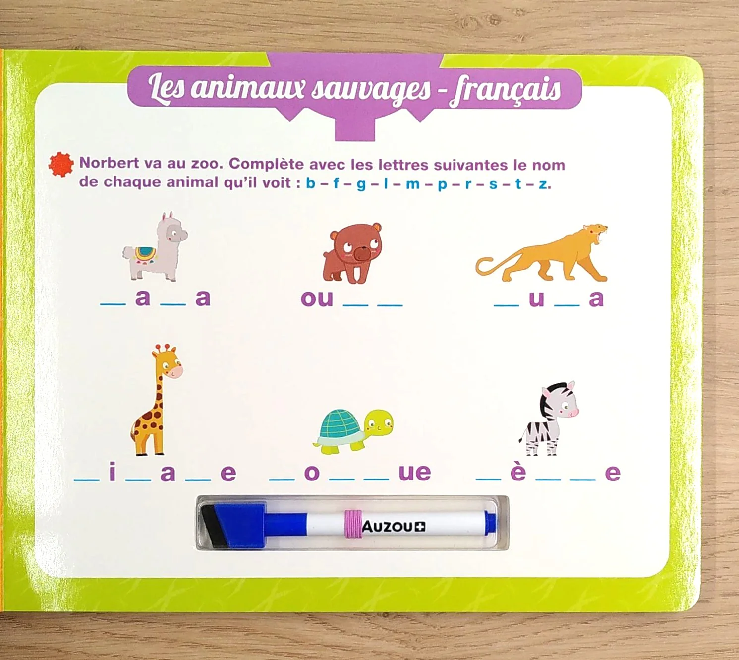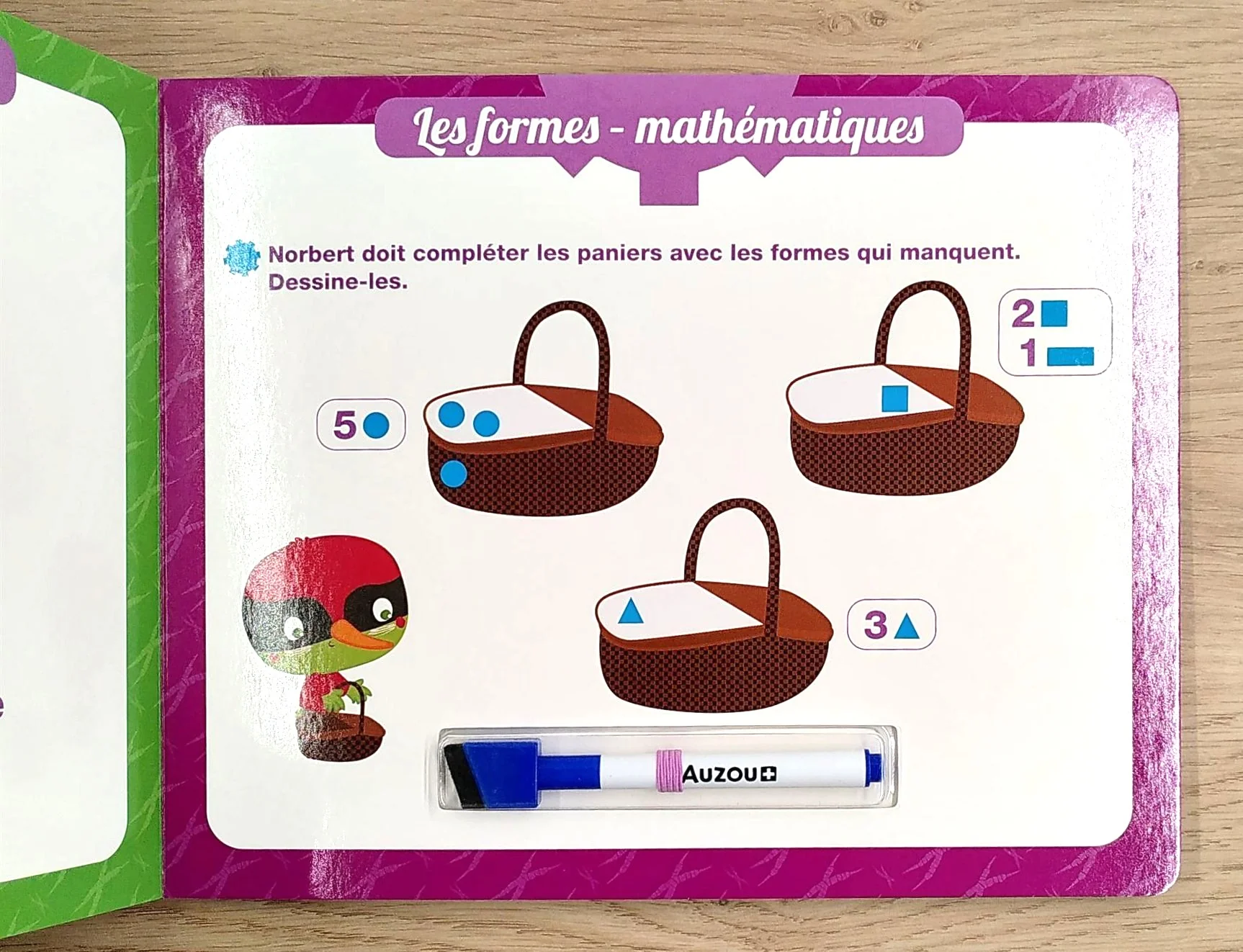 Ce livre-ardoise est livré avec un crayon effaçable permettant de faire et de refaire les activités proposées.