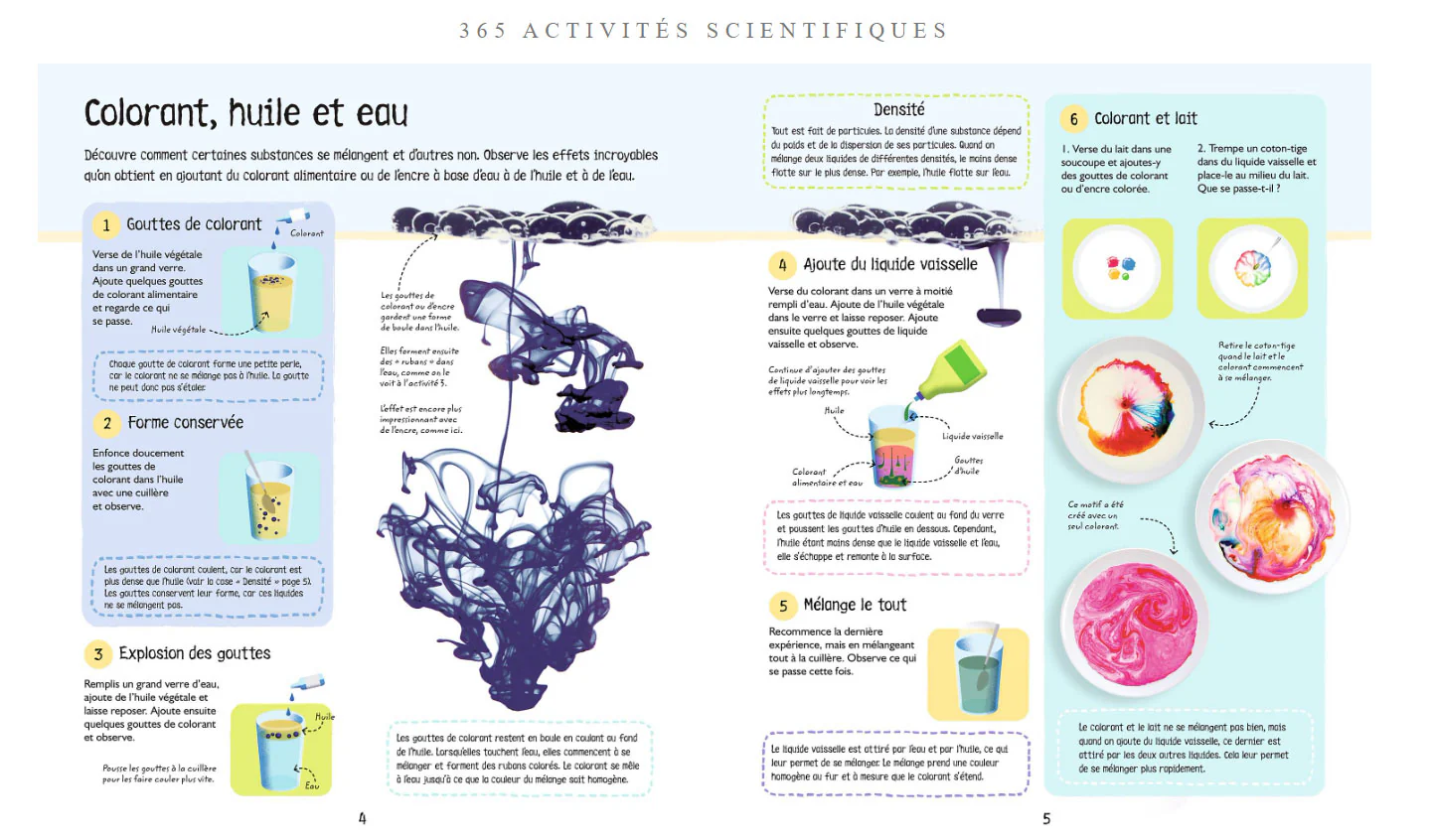 👉Ce beau cahier – livre de science pour enfant propose différentes expériences scientifiques rapides et amusantes :