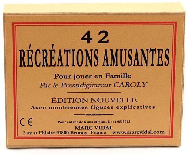 Petite boite de jeux rétro à mettre dans la poche et proposant 42 tours d’illusion et de magie présentés par le fameux prestidigitateur CAROLY.