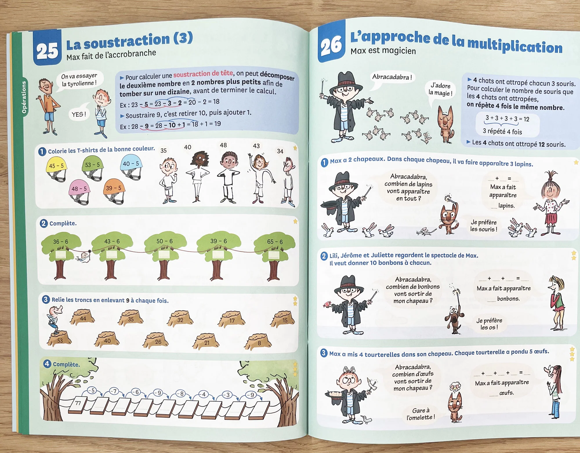 - des exercices conçus sous forme de jeux qui mettent en scène Max et Lili à l’école.
