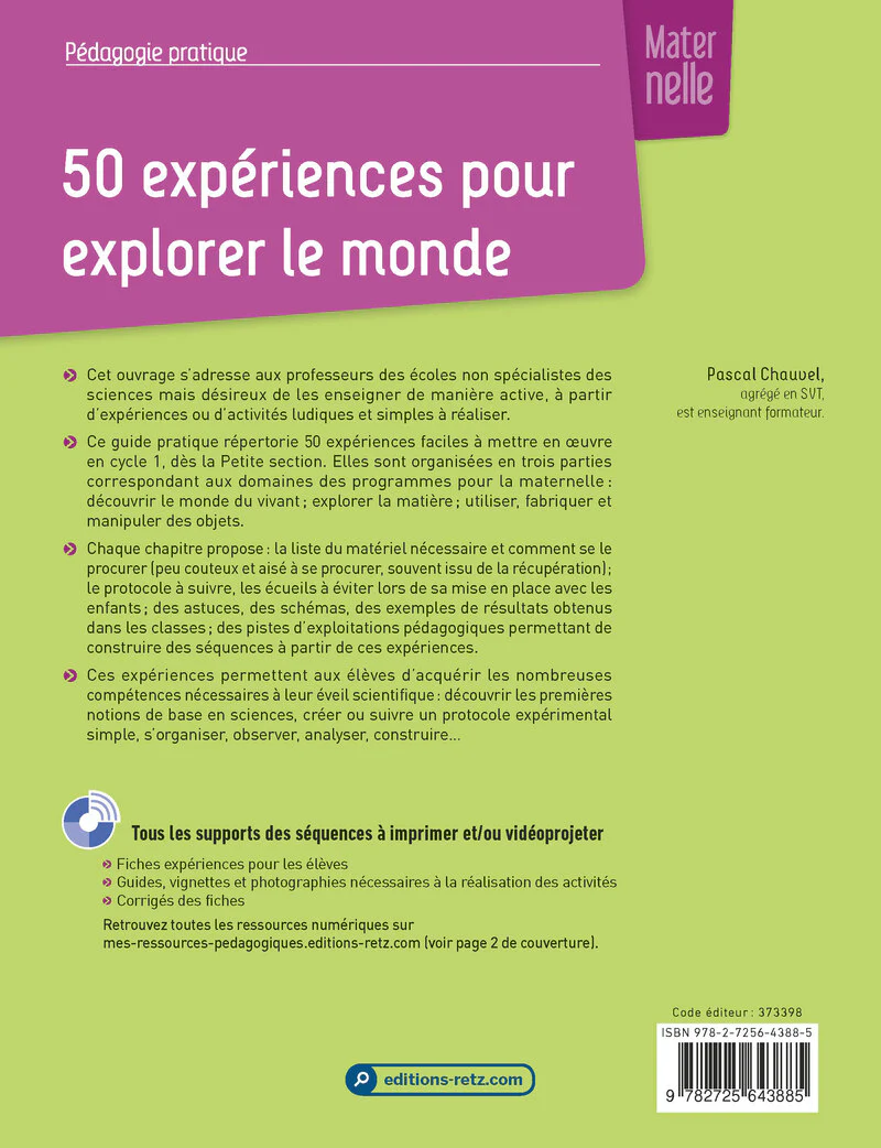 Conforme aux programmes, ce guide pratique répertorie des expériences faciles à mettre en œuvre dès 3 ans.