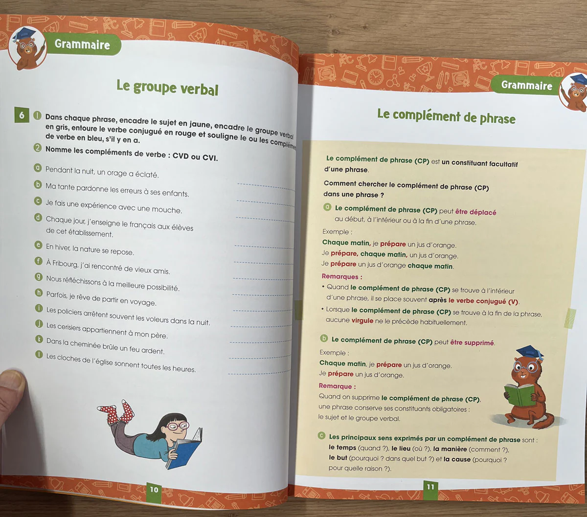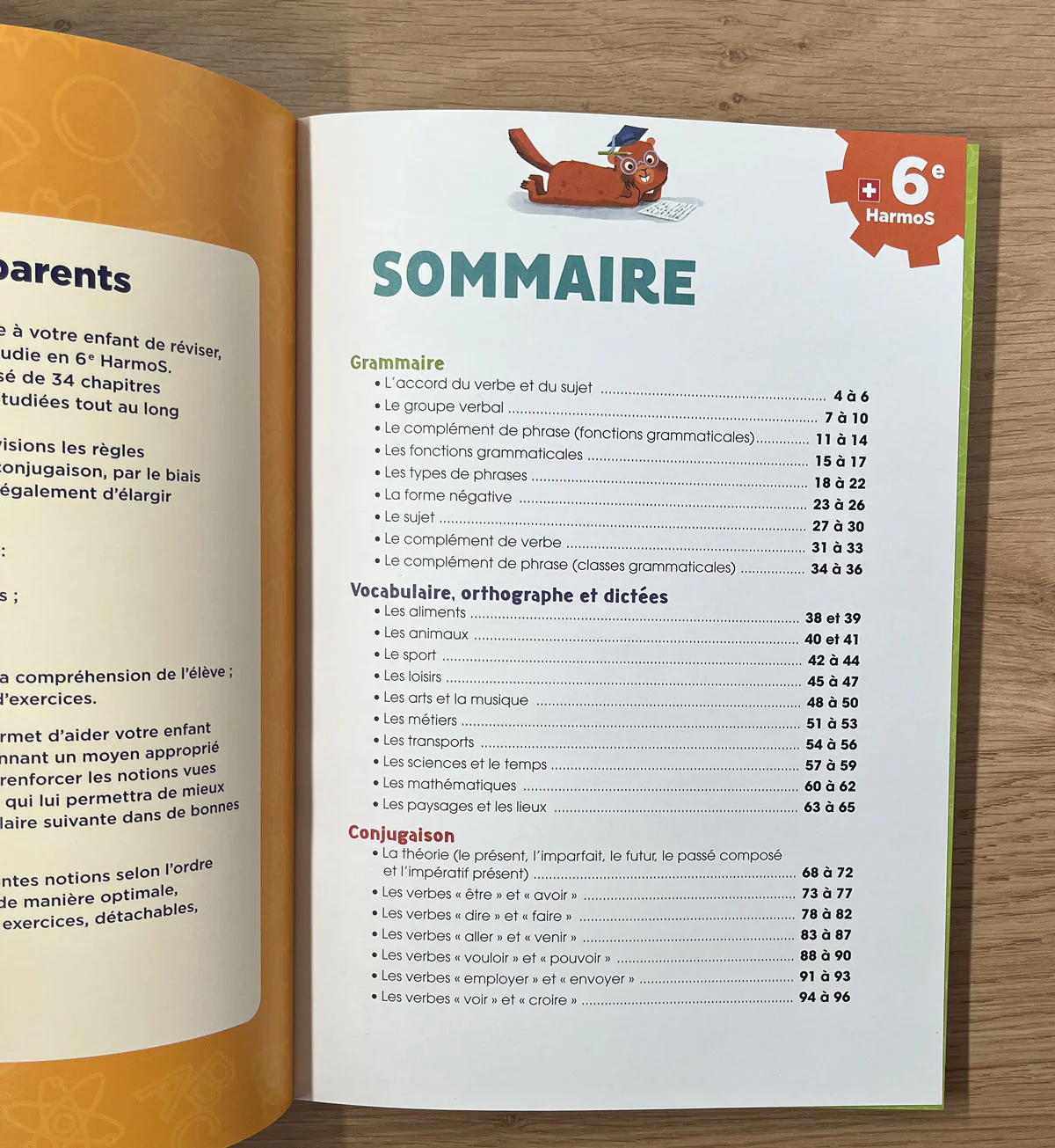 Brochure de 132 pages d’exercices et de théorie, calquant parfaitement au programme de français de la 6P