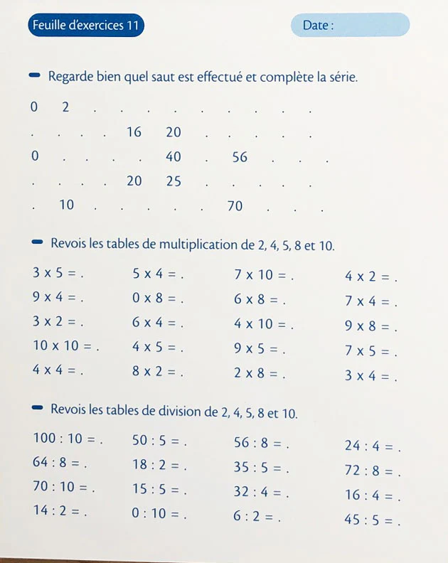 Ce cahier d’exercices est calqué sur le programme scolaire belge, très proche du système suisse.