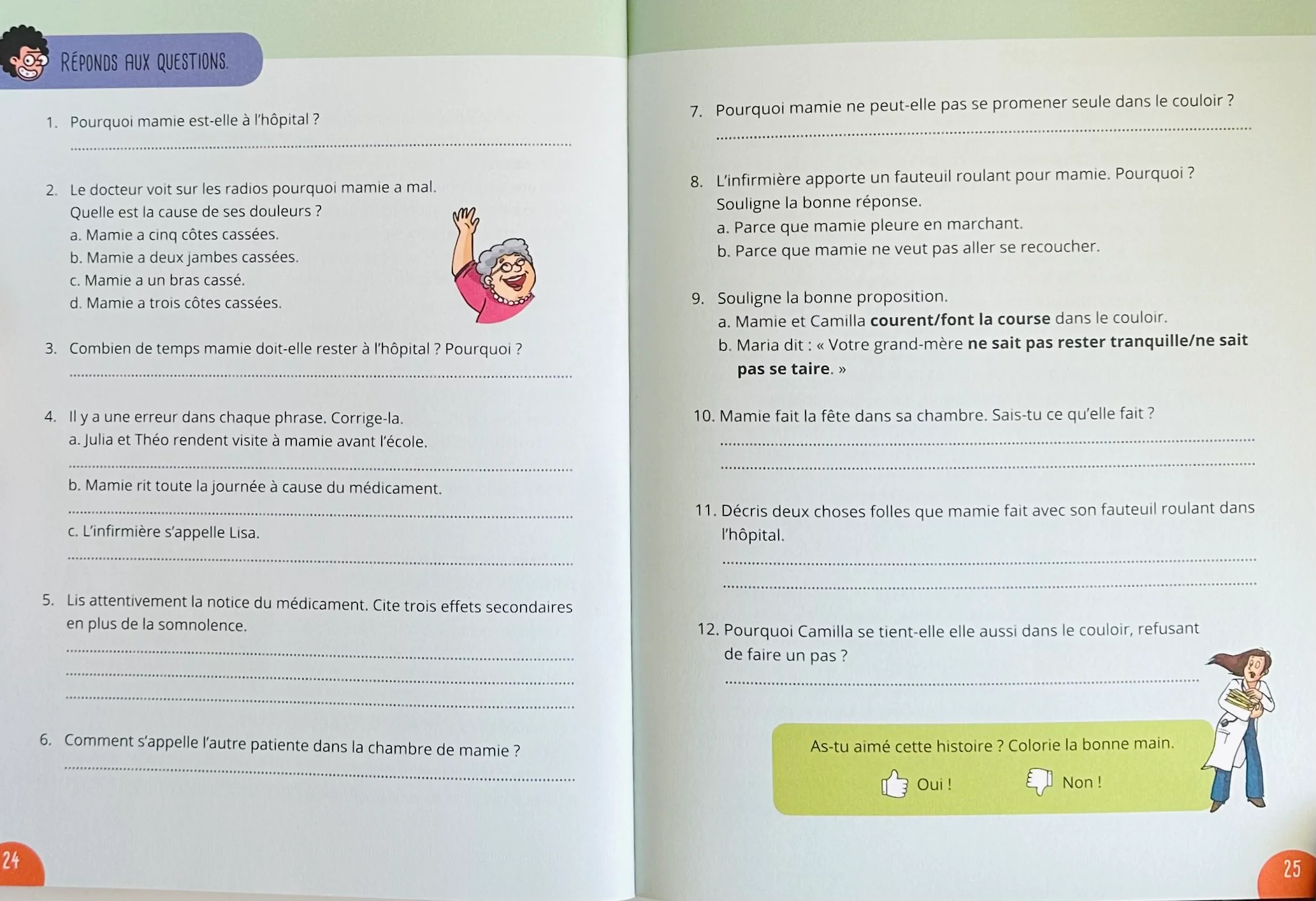 Grâce aux chouettes histoires et aux questions qui s’y rapportent, tu pourras t’entraîner à comprendre ce que tu viens de lire. Dans certaines histoires, l’information est traitée différemment, par exemple sous la forme d’un article de journal, de règles d’un jeu… Cela permet de l’assimiler de manière ludique.