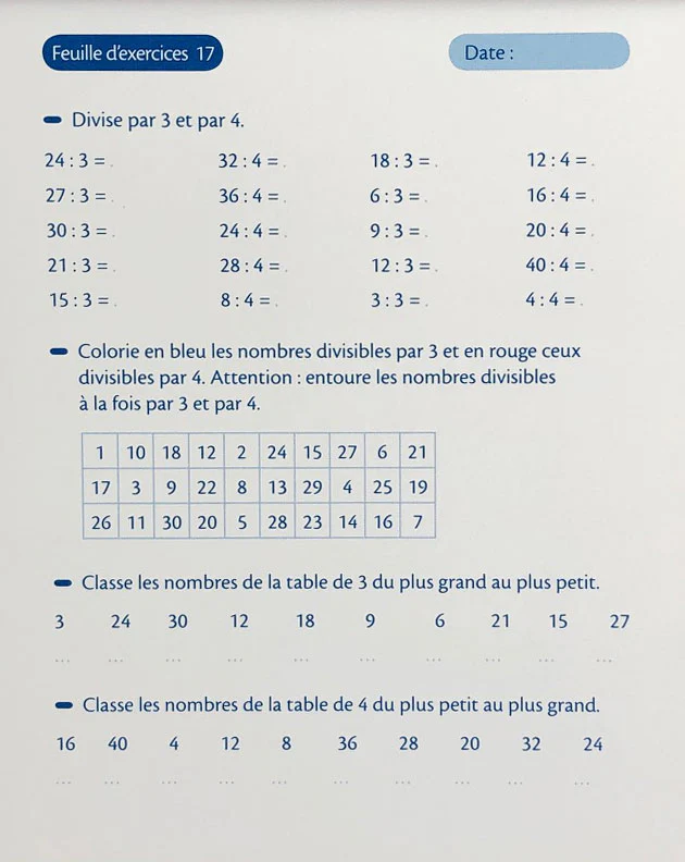 Ce cahier d’exercices est calqué sur le programme scolaire belge, très proche du système suisse.