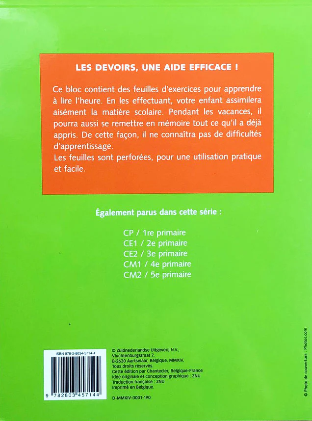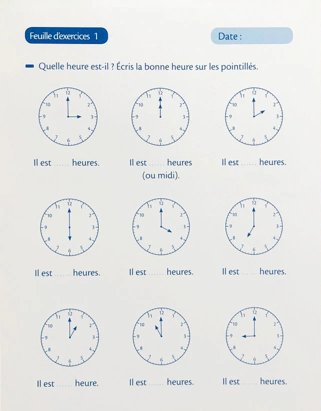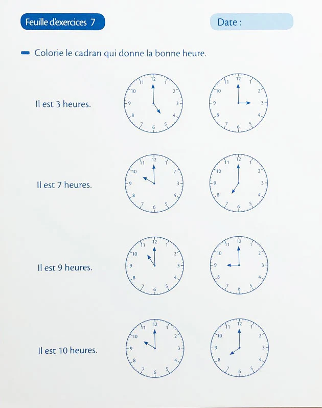 Ces feuilles d’exercices sont conçues pour permettre à votre enfant de s’exercer à lire l’heure. Les feuilles sont détachables et un corrigé se trouve à la fin du carnet.