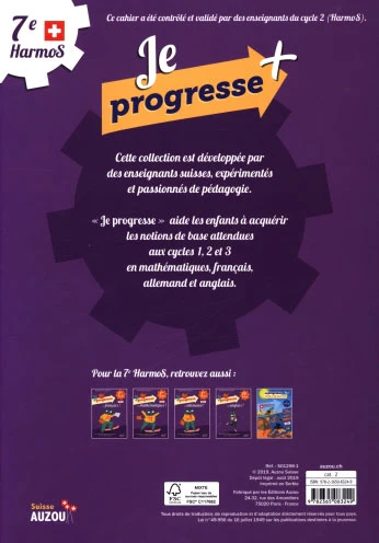 Cette brochure d’appui scolaire, basée sur le programme romand, comprend des exercices, jeux et dictées basés sur l’apprentissage de la conjugaison, de l’orthographe et de la dictée pour progresser en français.