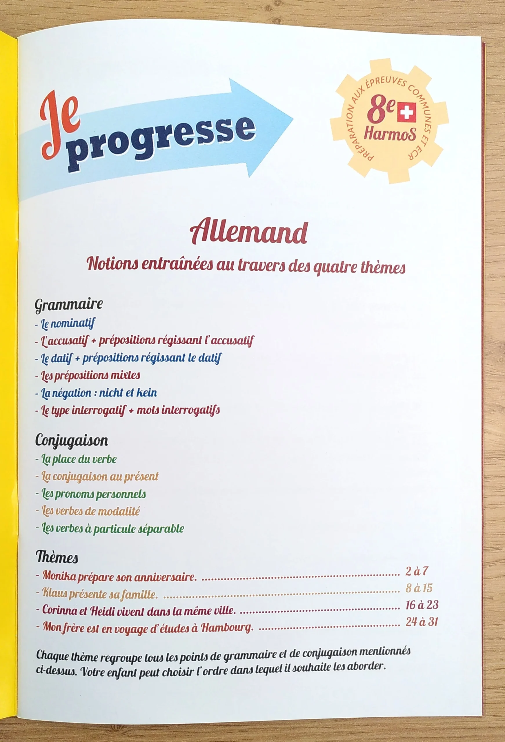 Cahier de soutien scolaire en allemand basée sur le programme romand.