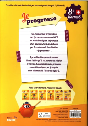 En fonction du nombre et de l’importance des notions à acquérir en 8ème Harmos, ce cahier pourra aider votre enfant à assurer une consolidation de son apprentissage. Il trouvera plusieurs exercices variés, basés sur le vocabulaire, la conjugaison et la grammaire.