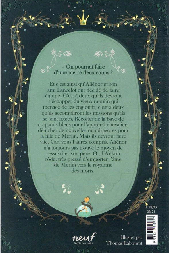 - Un magnifique roman fantasy où Aliénor, la fille de Merlin, Lancelot le fils de la fée Viviane, la fée Morgane entraîne le jeune lecteur dans le monde enchanteresse de la magie des druides et des fées. On y retrouve les forêts magiques de Brocéliande, de celle du palais de cristal de la Dame du Lac …