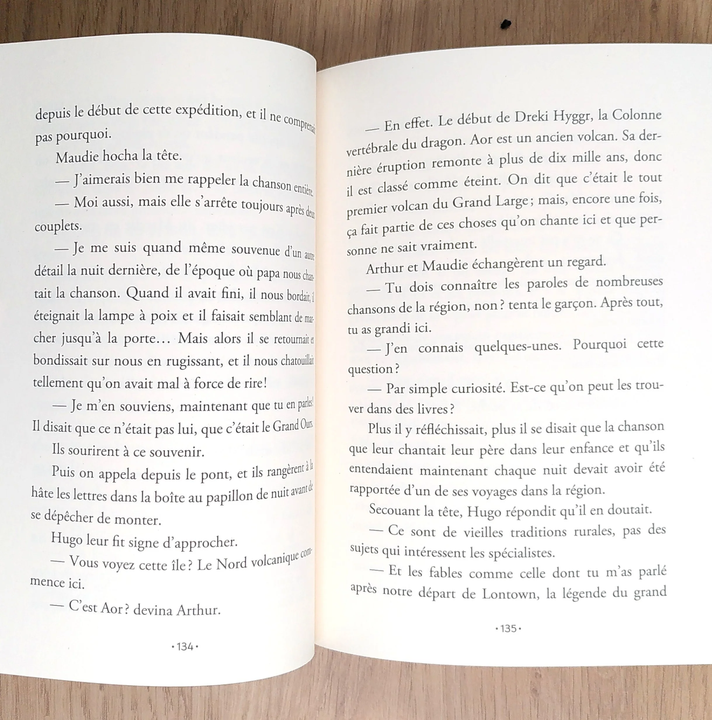 L’Aurora et son équipage partent explorer les îles volcanique du nord où le père d’Arthur et Maudie a autrefois découvert les papillons Brightstorm et où vivrait une espèce d’ours extralucide…