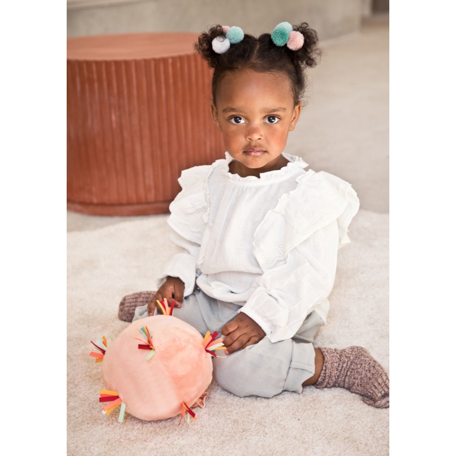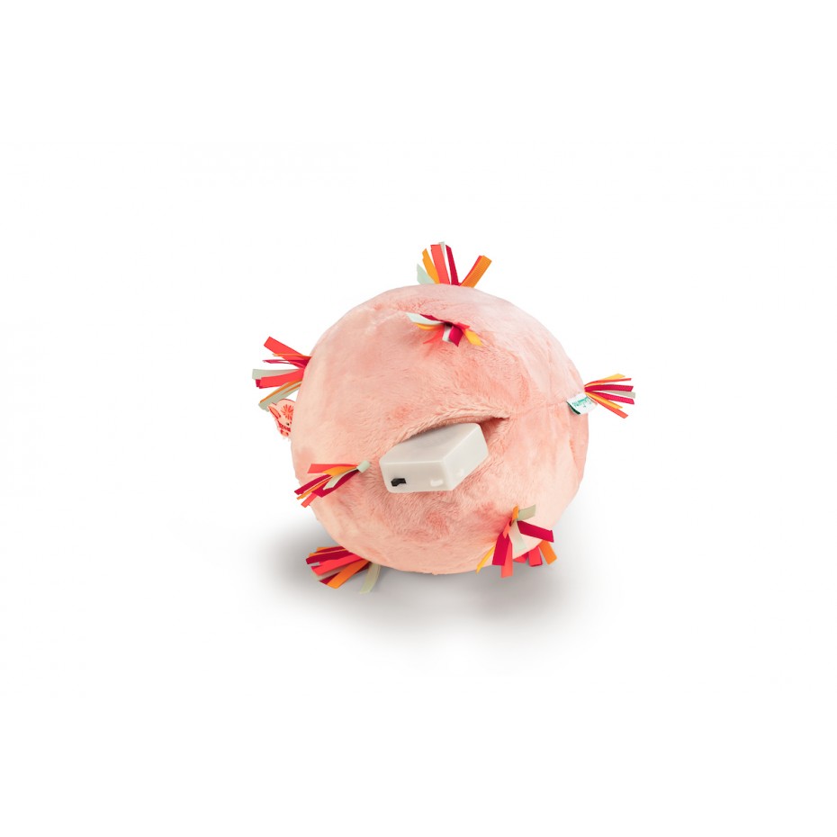 Cette balle sensorielle rose en tissu tout doux, sur laquelle s’amuse Stella le Faon, dispose de petites lichettes multicolores afin stimuler la motricité fine. A l’intérieur se trouve un boitier musical pour stimuler l’ouïe. A l’aide d’un bouton sur celui-ci, vous pouvez à tout moment décider d’activer ou non les sonorités. Elle est facile à manipuler par les petites mains et stimulera les sens des plus petits grâce aux diverses matières et sons. Les bambins peuvent en outre déployer leurs talents de lanceur ou de footballeur en toute sécurité.