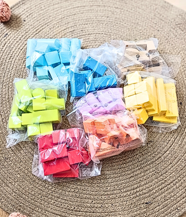 Baril de 100 cubes de bois colorés