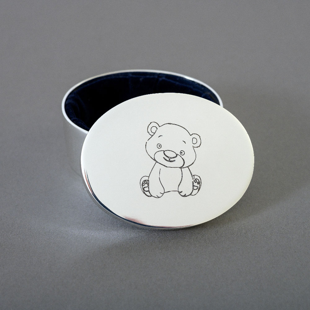 [vc_column_text css= » » css_params= » »]Boite à dents de forme ovale en métal argenté de longueur environ 6.3 cm. Une boîte à dent ourson est un cadeau idéal pour un premier cadeau ou un cadeau d’anniversaire des tout petits.[/vc_column_text]