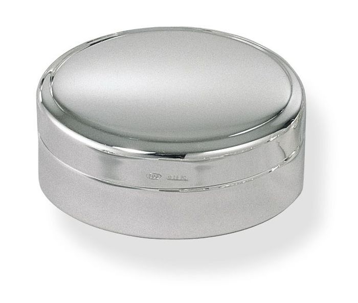Boite à dents de forme ronde en argent. Ø : 4.5 cm.