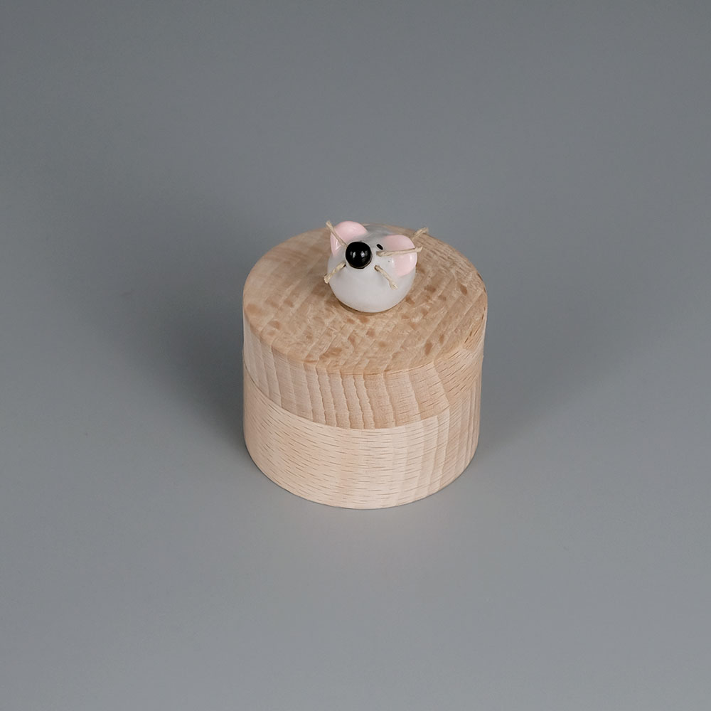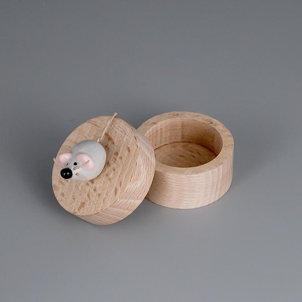 Boite à dents Petite Souris en bois tourné et faïence grise
