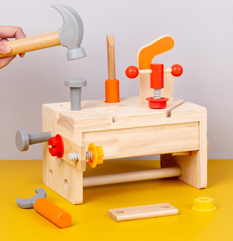 – Kit d’outils en bois de qualité – Apprentissage en s’amusant – Prépare bébé à devenir un vrai bricoleur