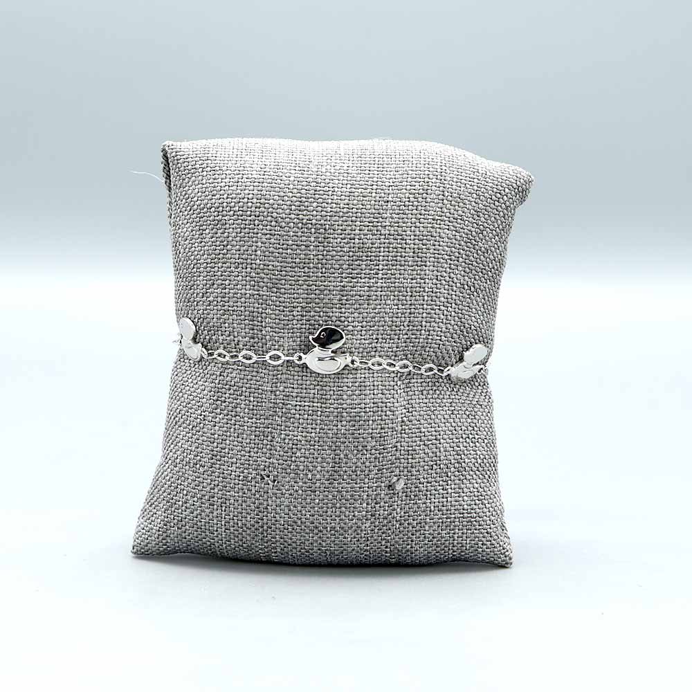 Bracelet en argent massif décoré de petits canards, idéal pour un premier bijou. Longueur : 17 cm. Poids bracelet argent massif : 4 g.