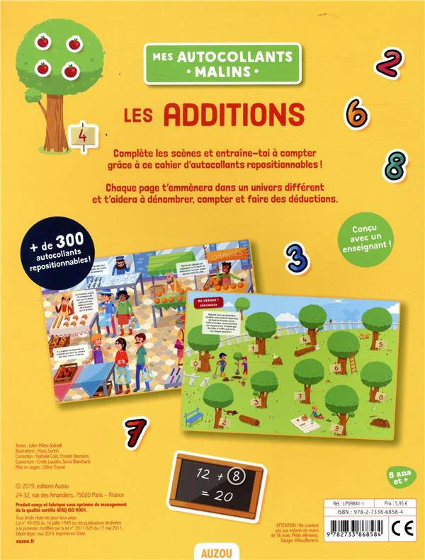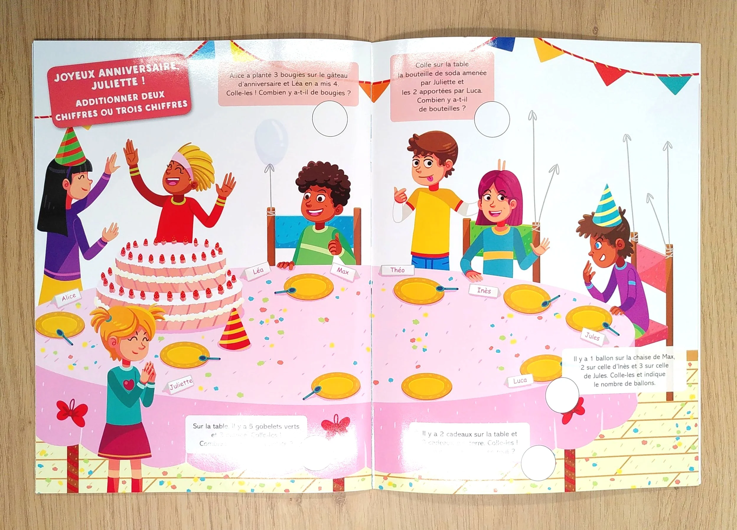 Plus de 300 autocollants malins et repositionnables pour compléter les scènes et s’entraîner à compter.