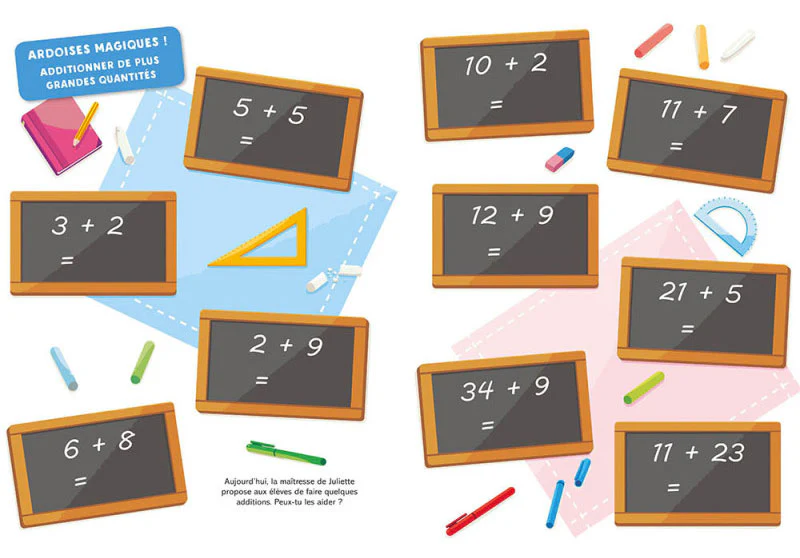 Découvrir les additions Cahier de jeux pour démarrer l’école en jouant! Plus de 300 autocollants malins et repositionnables pour compléter les scènes et s’entraîner à compter. Chaque page propose un univers différent et aide l’enfant à dénombrer, compter et faire des déductions. Les mises en situation sont simples pour comprendre les quantités et les additions […]
