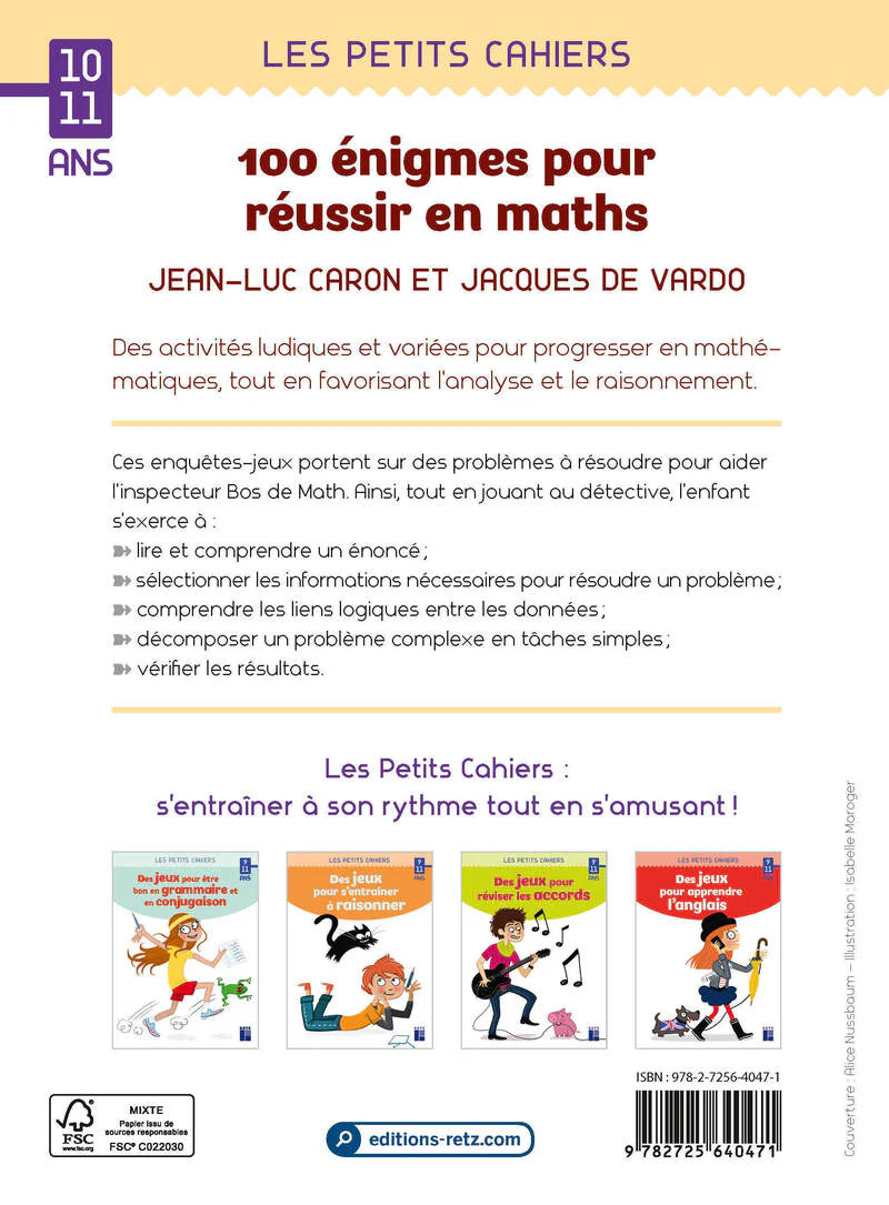 Tout en jouant, ce cahier propose des activités ludiques et variées pour progresser en mathématiques, tout en favorisant l’analyse et le raisonnement.