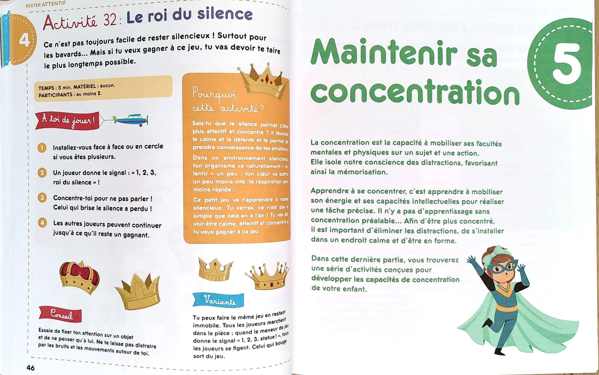 Il ne suffit pas de demander à son enfant de se concentrer pour qu’il y arrive ! Pour autant, se concentrer s’apprend et, grâce à des activités simples et ludiques pratiquées régulièrement, les enfants parviennent à progresser rapidement. Apprendre à se concentrer, c’est essayer de mobiliser toute son énergie et toutes ses facultés intellectuelles dans la réalisation d’une tâche donnée, et contrairement à ce que l’on pourrait croire, c’est en s’amusant que cet apprentissage sera le plus efficace.