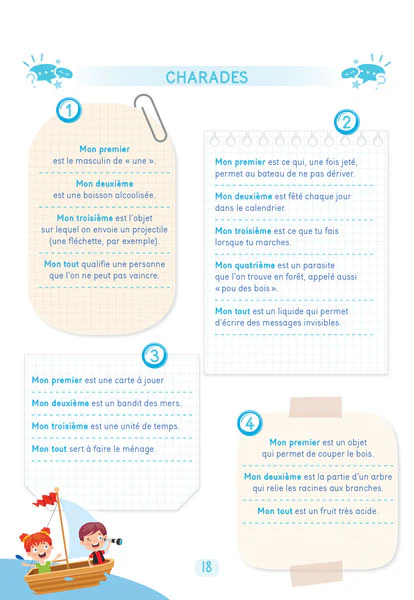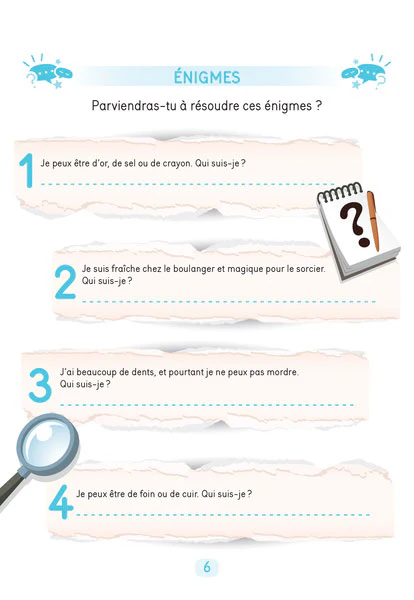 Énigmes, défis, devinettes et beaucoup d’autres activités sont réunis pour stimuler les neurones et développer de bons réflexes face aux situations casse-tête.