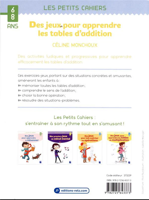 Ce petit cahier propose aux enfants de 6-8 ans un entraînement ludique et progressif pour apprendre efficacement les tables d’addition.