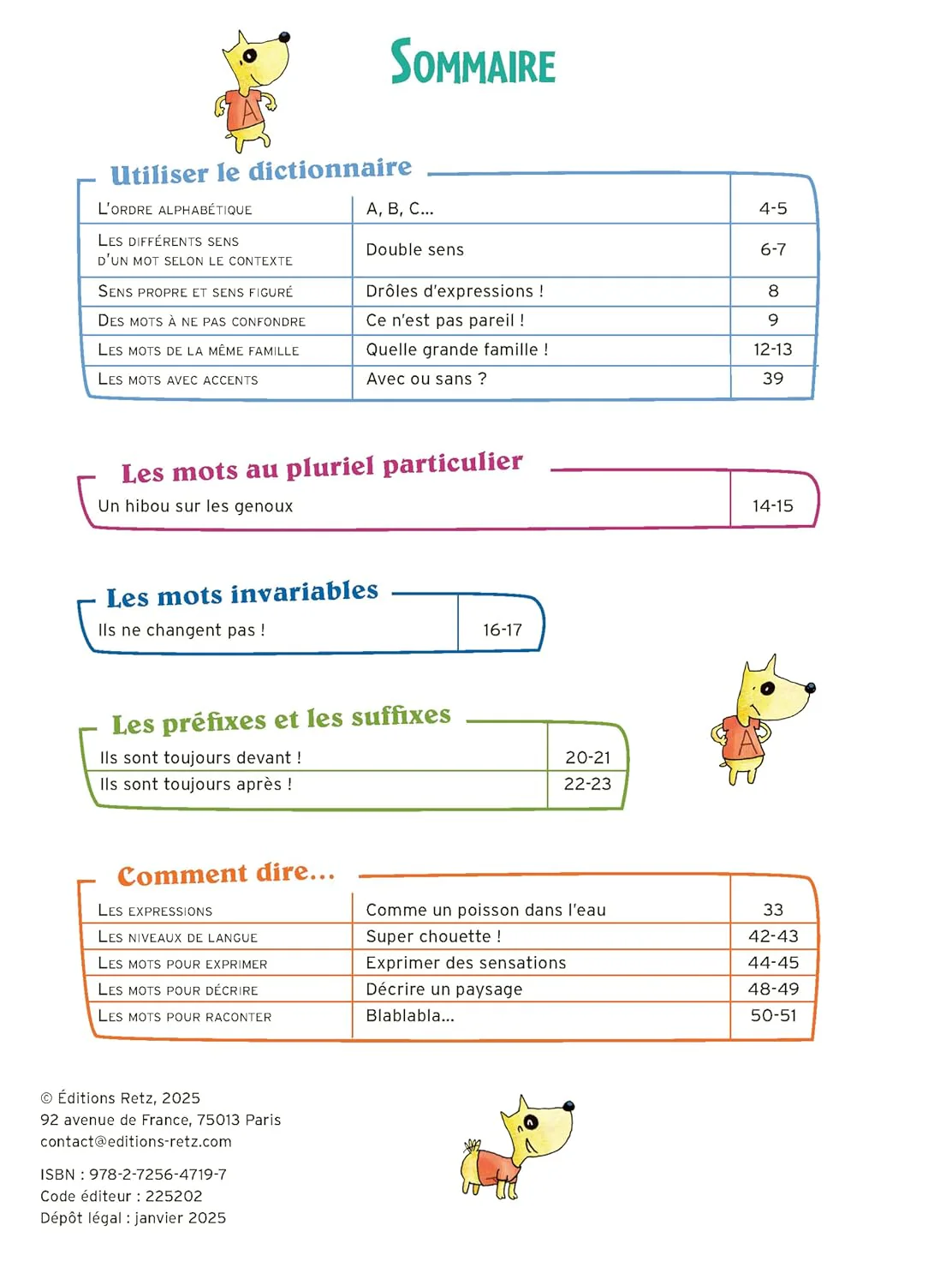 Ce « Petit Cahier » tout en couleur offre aux enfants de la 5 Ă la 7P, dans des contextes toujours ludiques et variĂ©s, des exercices d’entraĂźnement centrĂ©s sur les compĂ©tences de base et les savoirs fondamentaux en matiĂšre d’orthographe et de vocabulaire.