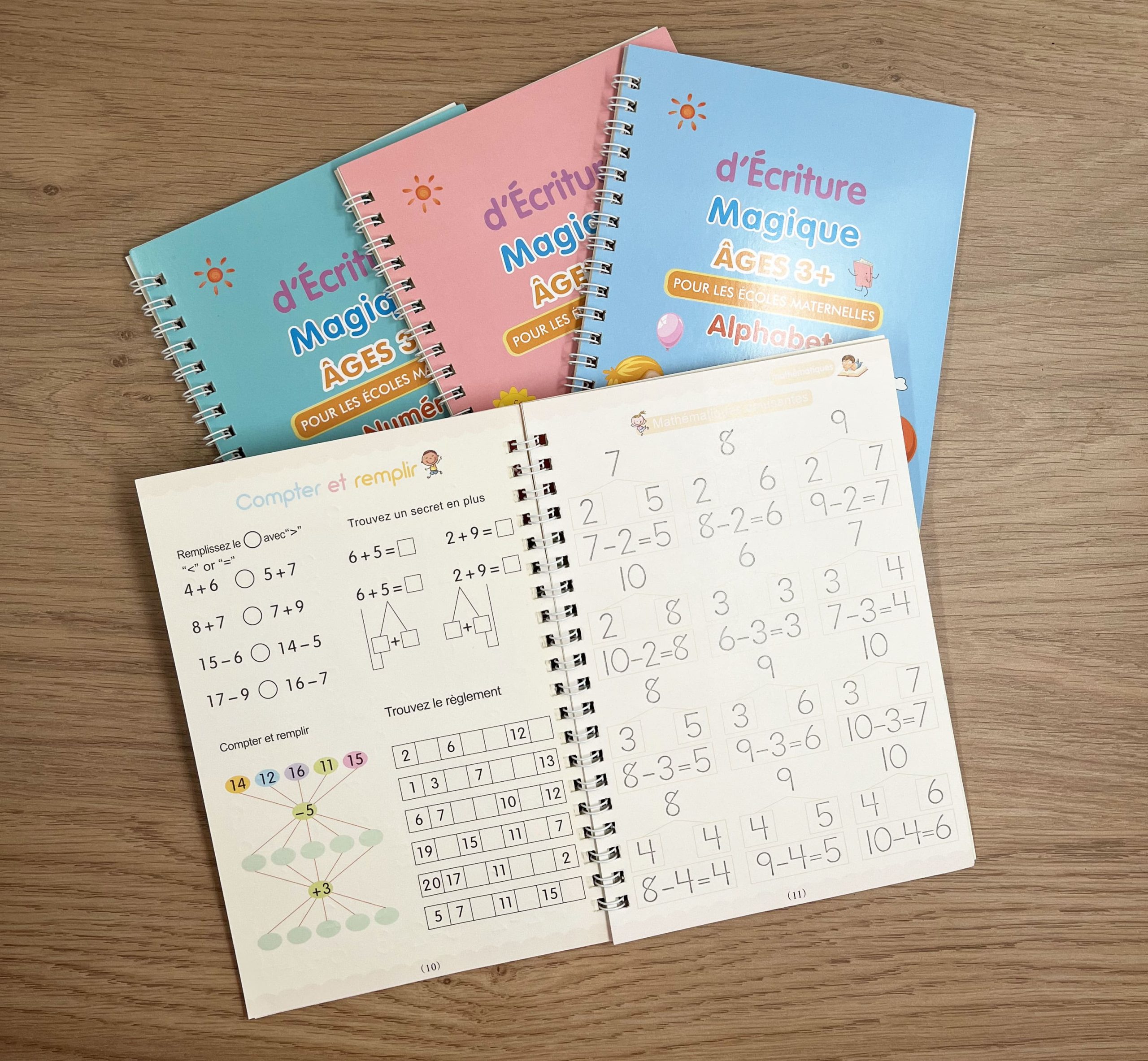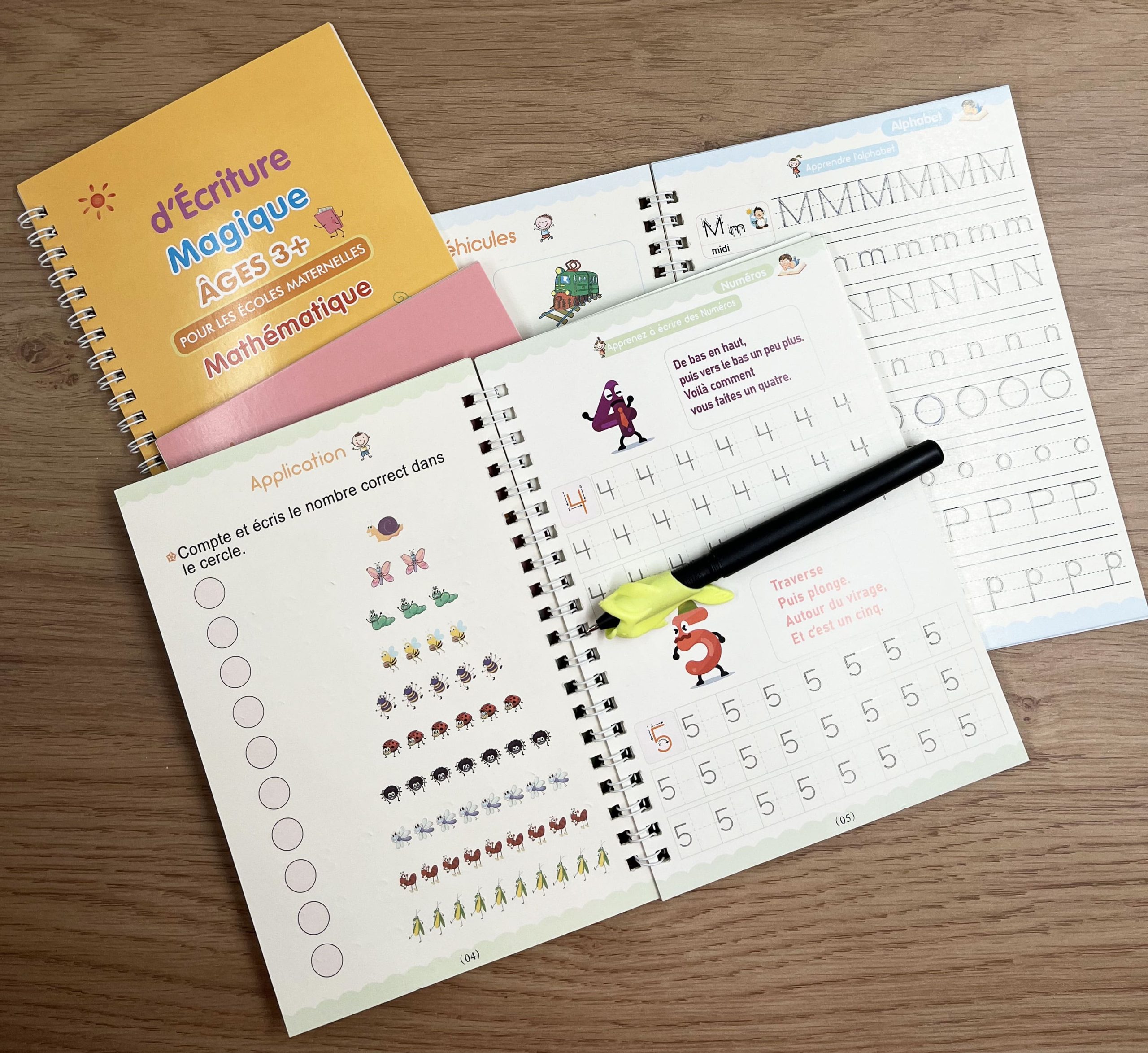 Cahier d’écriture magique – calcul, alphabet, chiffres et dessin – 1-2-3P