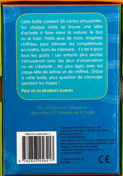 Sur chaque carte se trouve une idée d’activité faire dans la voiture, le bus ou le train.
