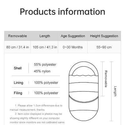 - Fermetures éclair sur toute la longueur permettant d’installer bébé sans le réveiller