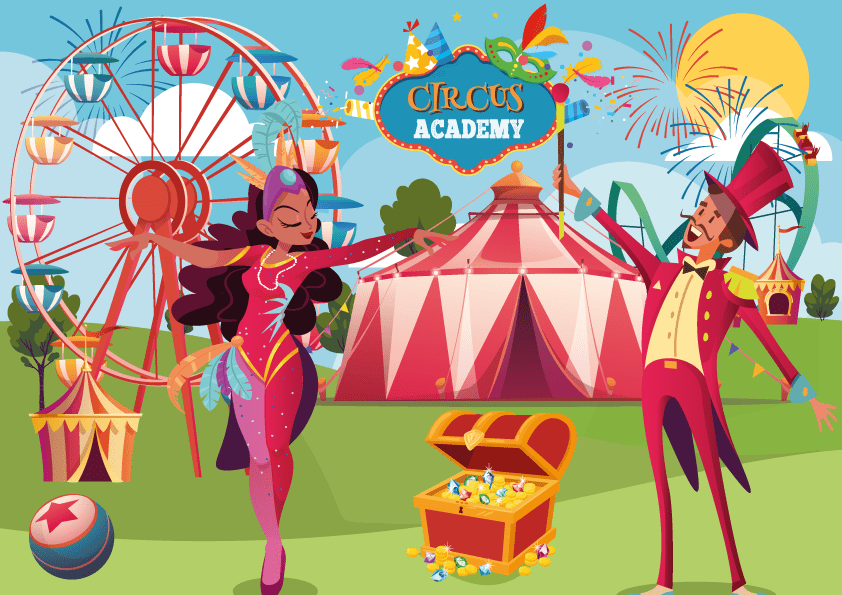 Bienvenue à la Circus Academy ! La joyeuse troupe d’artistes de cirque s’est installée en ville le temps d’une journée de fête. C’est donc dans une ambiance de célébrations et d’amusements que la troupe t’invite à venir les rejoindre pour faire partie de la Circus Academy.