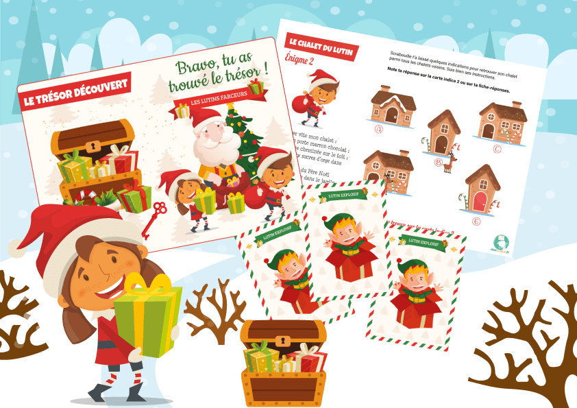 - Bonus : bonnets de Noël (2 couleurs), une affiche de présentation de la chasse au trésor