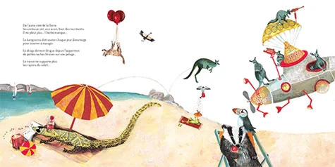Pour comprendre ce qui détraque l’atmosphère, les animaux décident d’envoyer les dauphins dans le monde entier pour recueillir des informations. L’enquête initie avec humour les jeunes lecteurs à l’enjeu des politiques écologiques