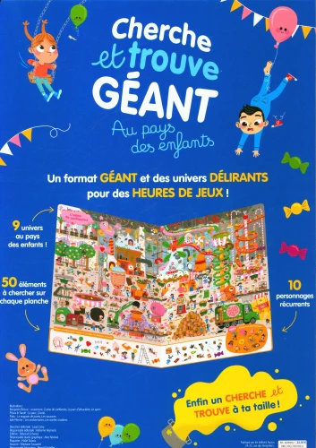 Jeu-livre géant pour enfant. Bienvenue au pays de enfants ! Découvrez vite leurs aventures au magasin de jouets, au parc d’attractions ou encore en sorties de classe ! Amusez-vous avec eux pendant des anniversaires ou au détour d’une usine de confiseries ! Découvrez vite 9 univers colorés et détaillés, avec 50 éléments à retrouver sur […]