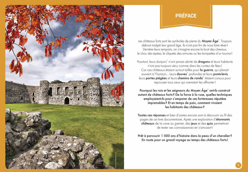 Un livre documentaire avec des informations passionnantes sur les châteaux forts du Moyen Âge complète le tout.