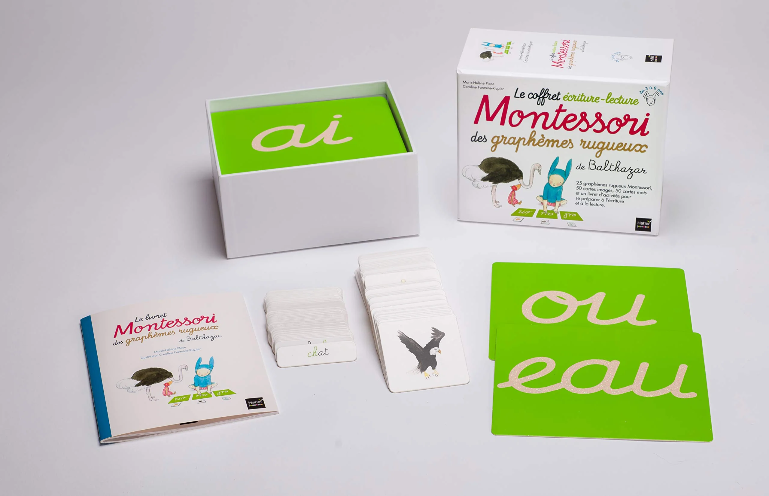 Coffret écriture-lecture Montessori des graphèmes rugueux de Balthazar