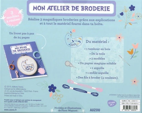 Coffret Atelier de broderie pour enfant – Dès 10 ans. Un petit atelier de broderie permettant de réaliser 3 magnifiques modèles imaginés par Flora Waycott. Dans ce coffret sont inclus: un tambour à broder de 10 cm de diamètre en bois, du tissu, du papier magique (soluble), 4 couleurs de fil, une aiguille à broder, […]