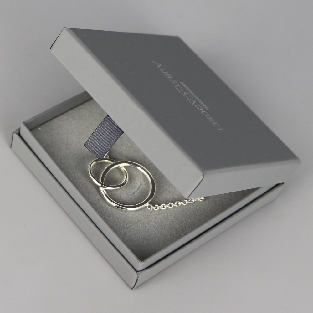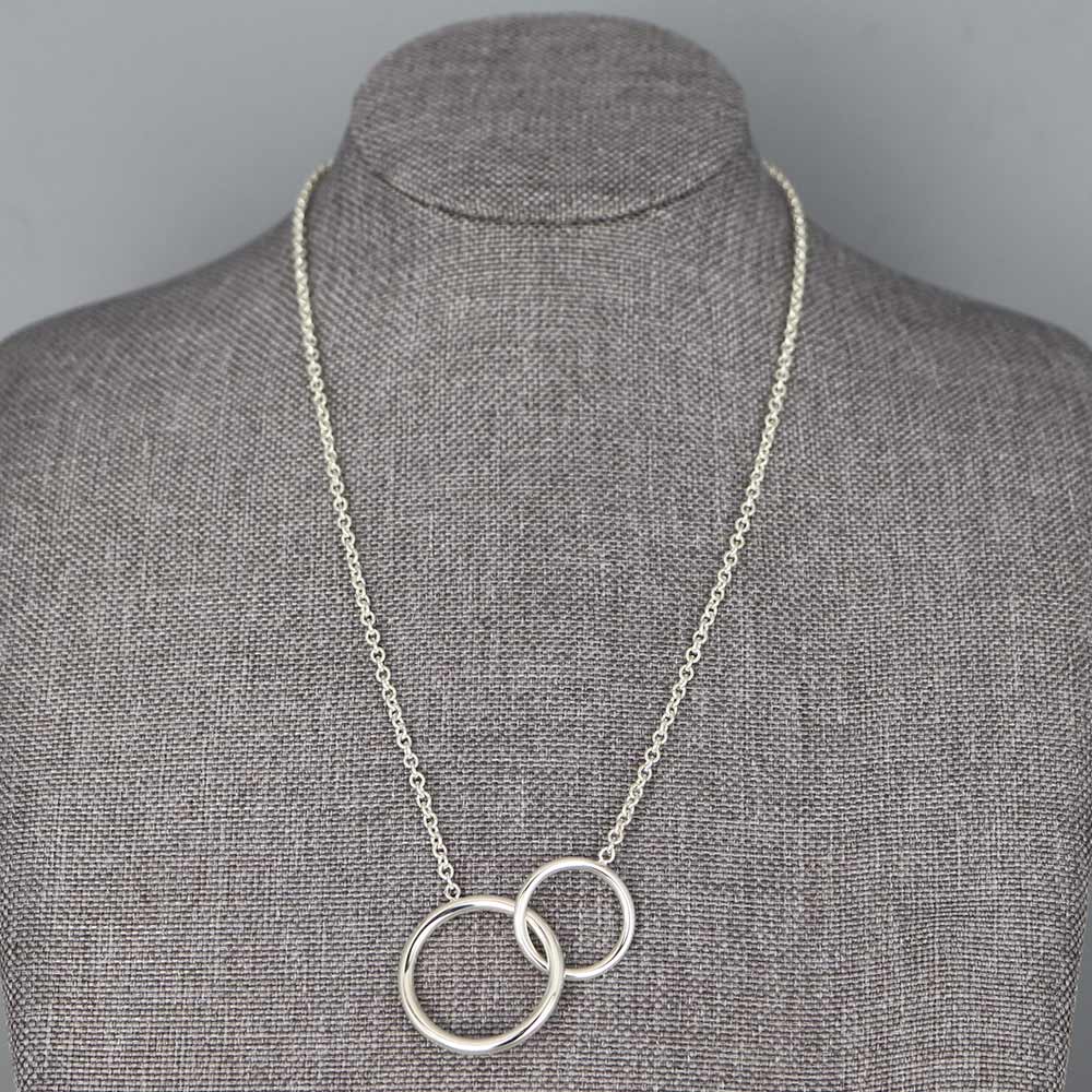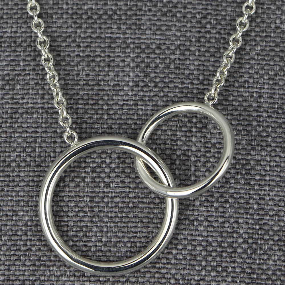 Collier en Argent massif. Collier femme orné de deux anneaux de diamètres différents entrelacés. Fabrication française.
