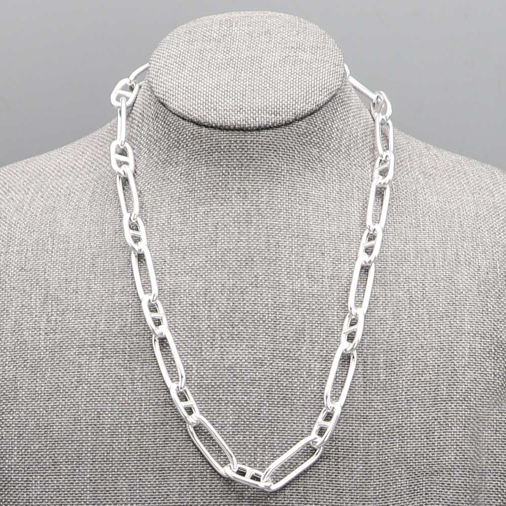 Collier en argent massif Mailles marines Mailles ovales. Fabrication française. L : 45 cm. Poids argent massif : 22 g. Mailles marines 16×8 mm/Mailles ovales 24×9 mm.