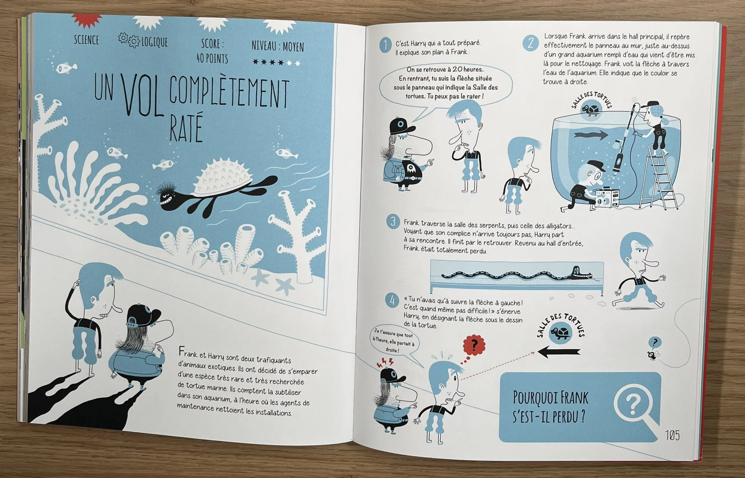 Les réponses sont à la fin pour ceux qui ont besoin d’un coup de pouce, mais le but est de stimuler la logique, l’observation et l’imagination du lecteur !