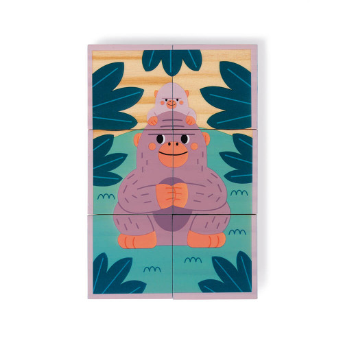 Les cubes sont en bois massif et permettent de reconstituer les tableaux en assemblant les bonnes faces : narval, ours brun, éléphant d’Afrique, koala, gorille et manchot empereur se révèleront au fur et à mesure des manipulations de bébé. Pour plus de facilité, chaque illustration est assortie d’un contour de couleur, ce qui aidera l’enfant dans le choix des pièces. Cette activité est idéale pour développer l’observation et la coordination chez les enfants à partir de 12 mois.